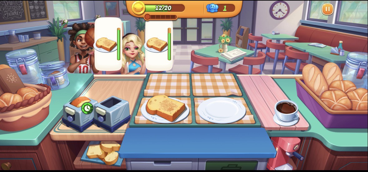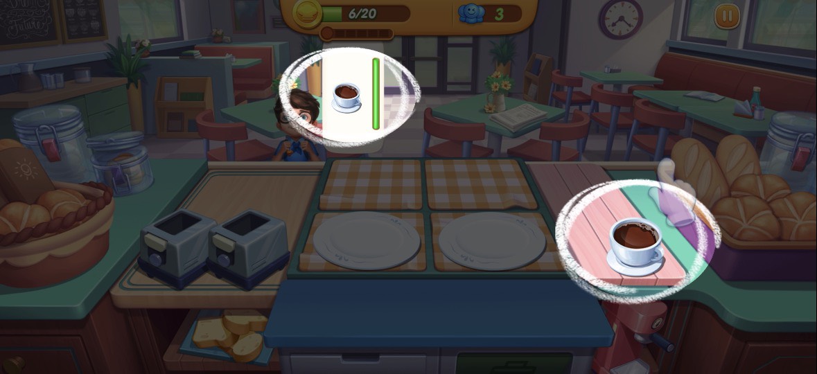 プレイヤーは注文内容を確認しながら料理を作り、素早く提供していきます。