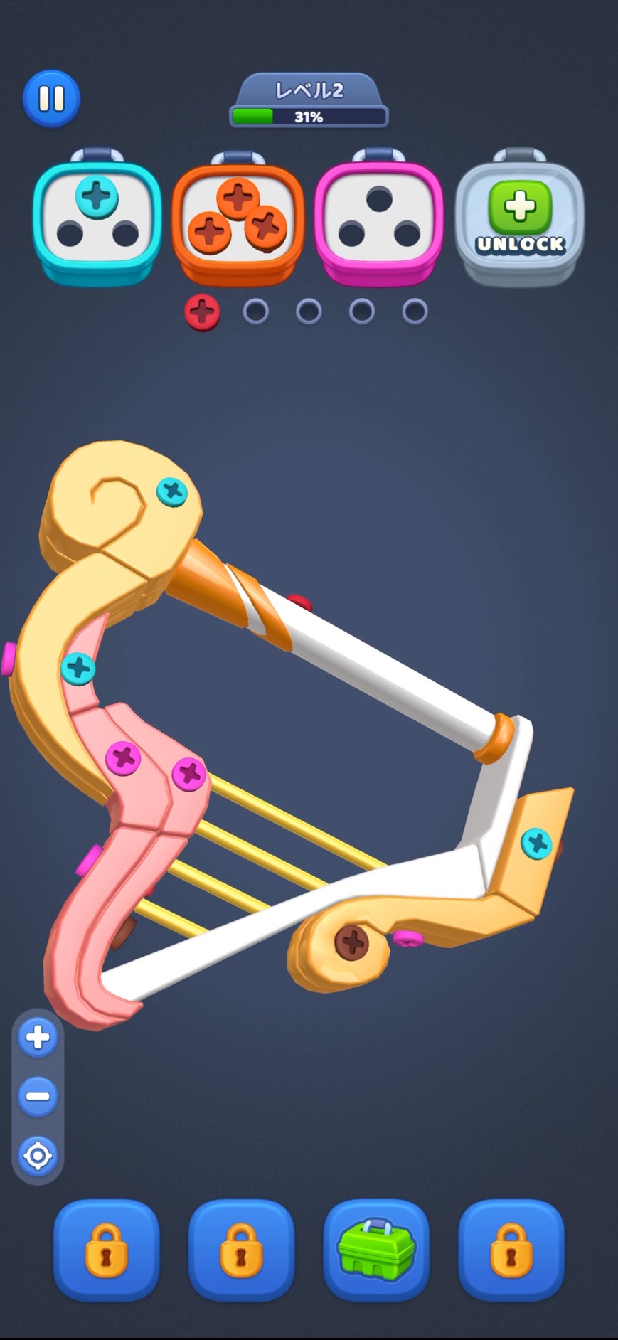 ネジ外しゲームは何種類かやりましたが、こちらはユニークなステージが多く、
