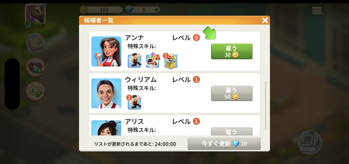 カフェの拡張には多くのコインが必要です。