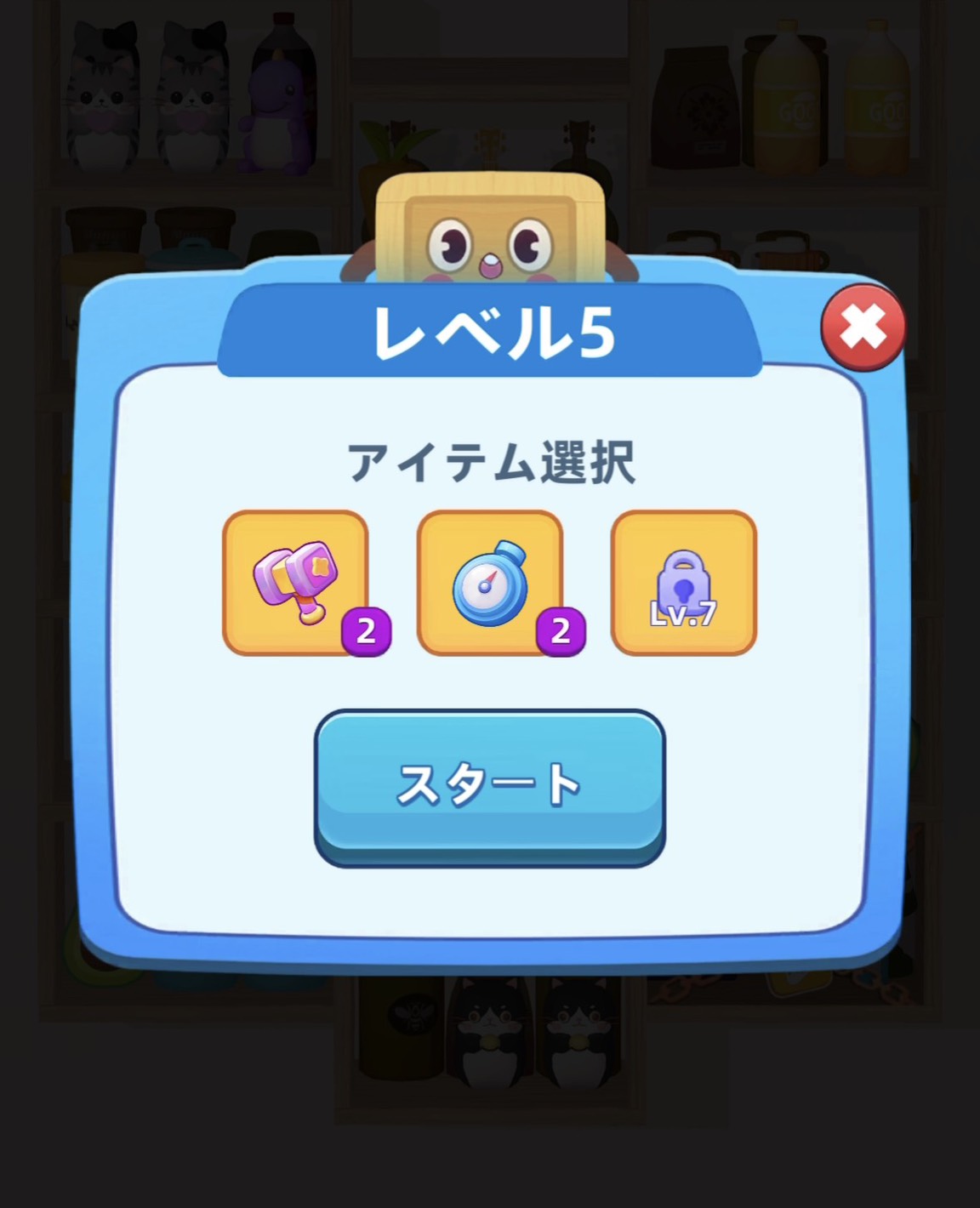 毎日寝る前5分!棚のアイテムを整理する感覚で楽しんでいます♪操作も簡単で、もう1ステージやっちゃおおうかなと思わず手が伸びます。可愛いグッズがピコピコ消えていくのがクセになります♡無料でここまで遊べるのは嬉しいんです!