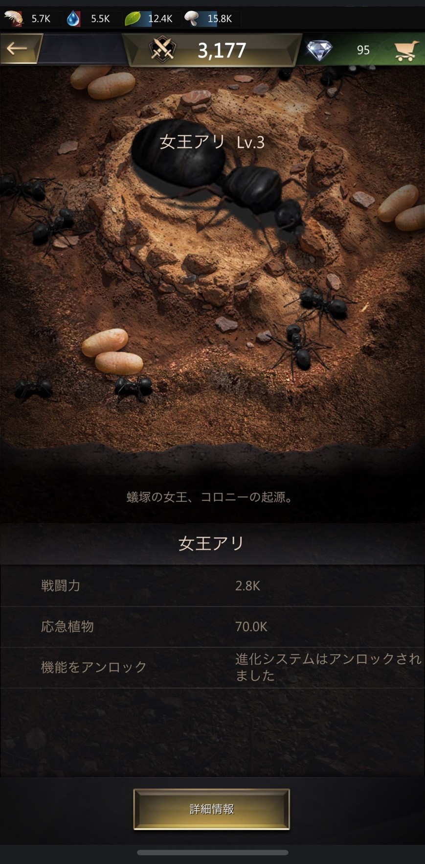 アリの飼育愛好家です。もともとスマホゲームには興味ないのですがアリなのでやりました。のんびり育成ゲームかと思っていたのですが、ただの陣取り課金ゲームですね。