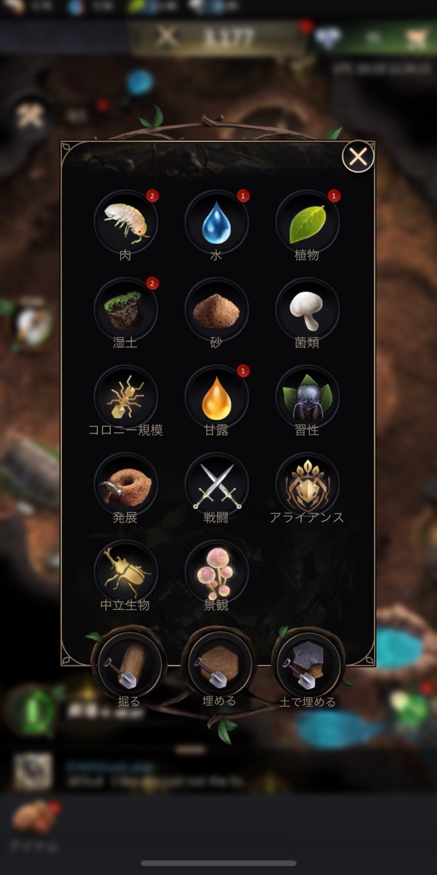 ★プレイヤーはありの女王を中心に巣を建設!資源を収集したり、